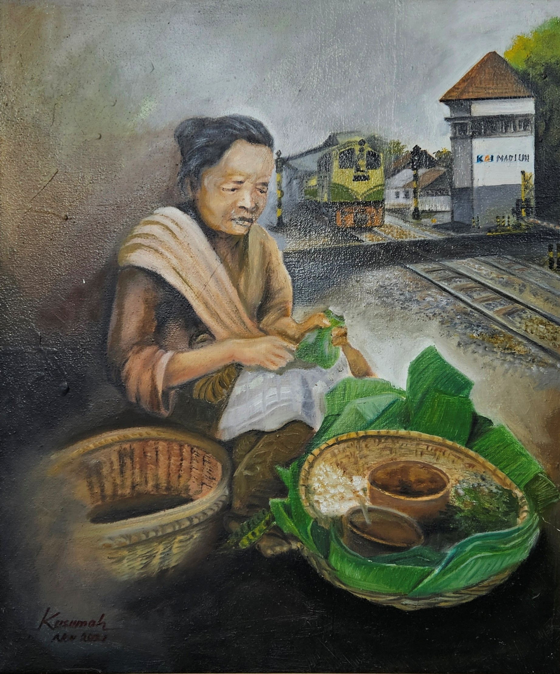 Lukisan ini dibuat pada tahun 2022 di Madiun, dimana tema ini dibuat sebagai bentuk mengangkat kearifan lokal yang ada di madiun dari sisi makanan khasnya yaitu Pecel Madiun. Terlukiskan mbok penjual pecel di karya itu, adapun background yang dibuat dengan mengambil suasana dipintu perlintasan Stasiun Kereta Api Madiun dengan tujuan untuk memudahkan dan mengingatkan para wisatawan yang akan berkunjung yang mayoritas menggunakan transportasi kereta api Karya lukisan tema "Pecel Pincuk Madiun" ini pernah diikutkan pada pameran di Hotel Aston Madiun yang langsung dibuka oleh Wakil Walikota Madiun saat itu.