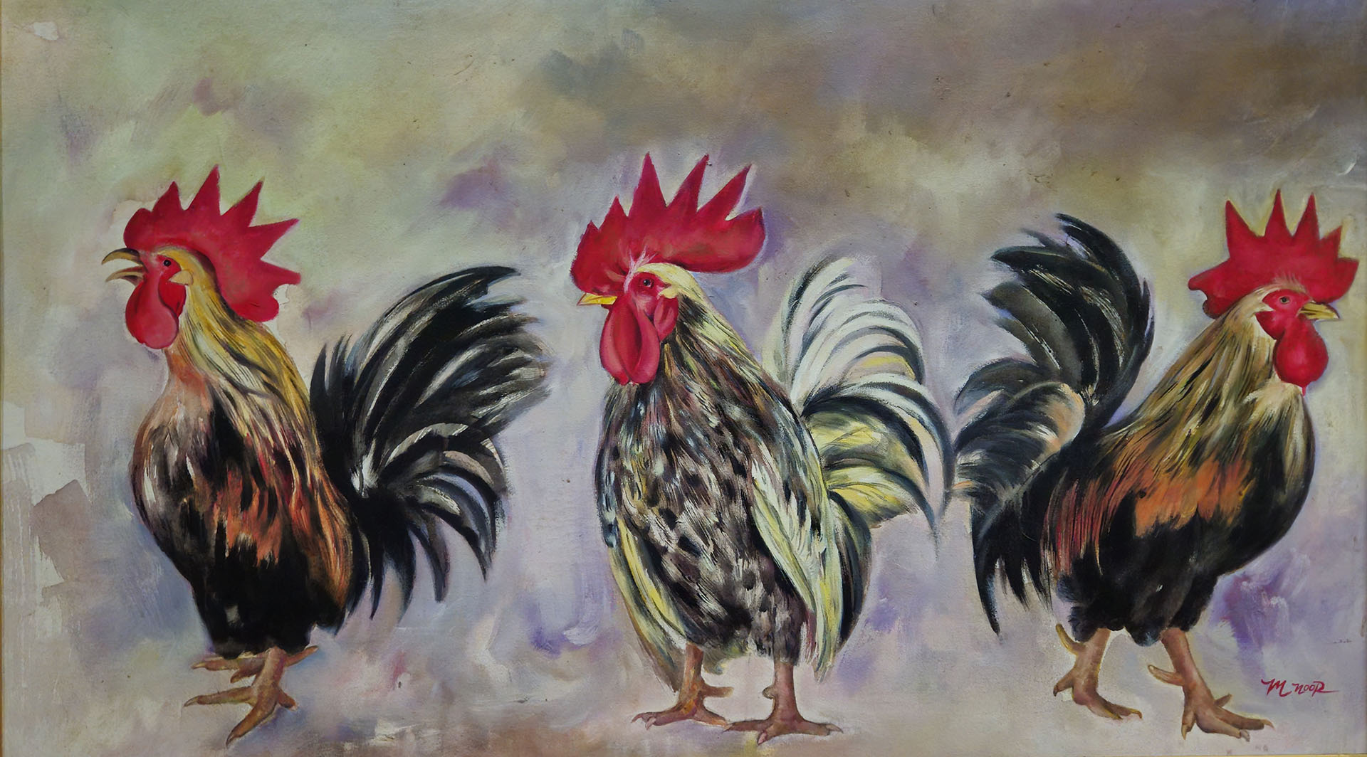 Dalam karya ini menampilkan objek ayam. Pada dasarnya 3 ayam ini kelihatan saling menjaga jarak, mungkin adanya persaingan diantara mereka dalam memperebutkan lawan jenis. Walaupun seperti ada unsur permusuhan, tetapi masih tetap bisa menjaga persahabatan