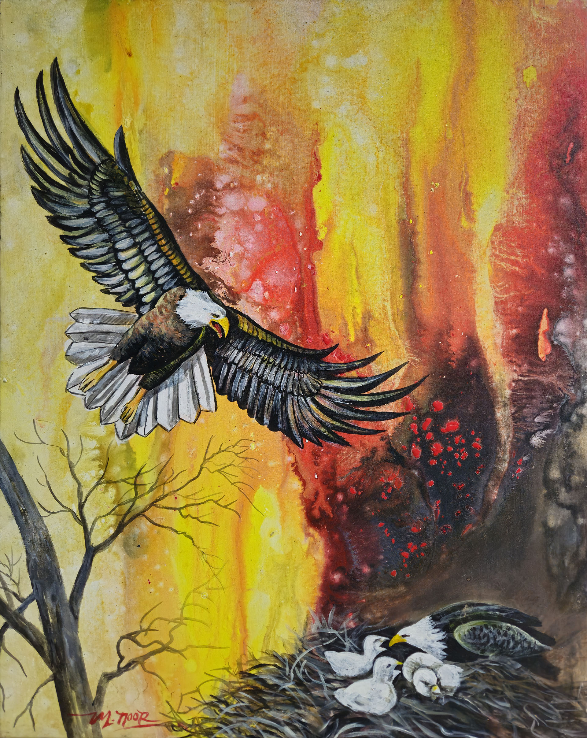 Naluri seorang ibu bisa juga dirasakan pada kehidupan mahluk lainnya. Betapa hewanpun mempunyai rasa kasih terhadap sesama apalagi terhadap anak-anaknya. Dalam karya ini terlihat induk elang mencarikan makan untuk anak anaknya, sungguh suatu pengorbanan yang tidak terukur