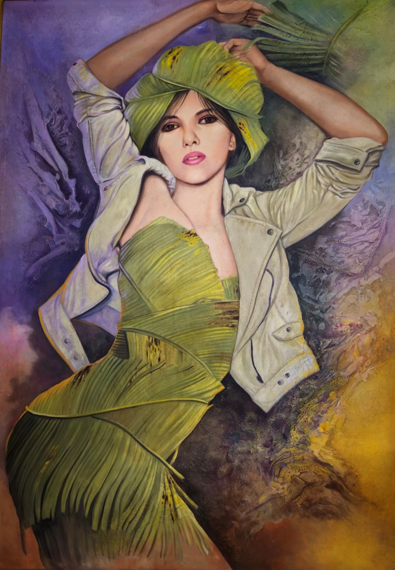 Dengan sedikit pengalaman tentang desain tekstil, pelukis berbagi ide, motif daun pisang, karena pohon pisang tidak hanya bisa dimakan buahnya, tetapi juga kalau dilihat serat daunnya cukup menarik kalau dibuat motif pakaian, terlihat eksotis dan elegan