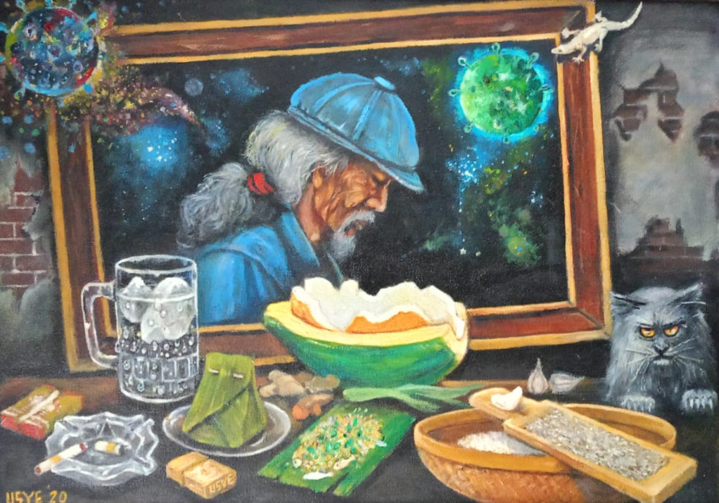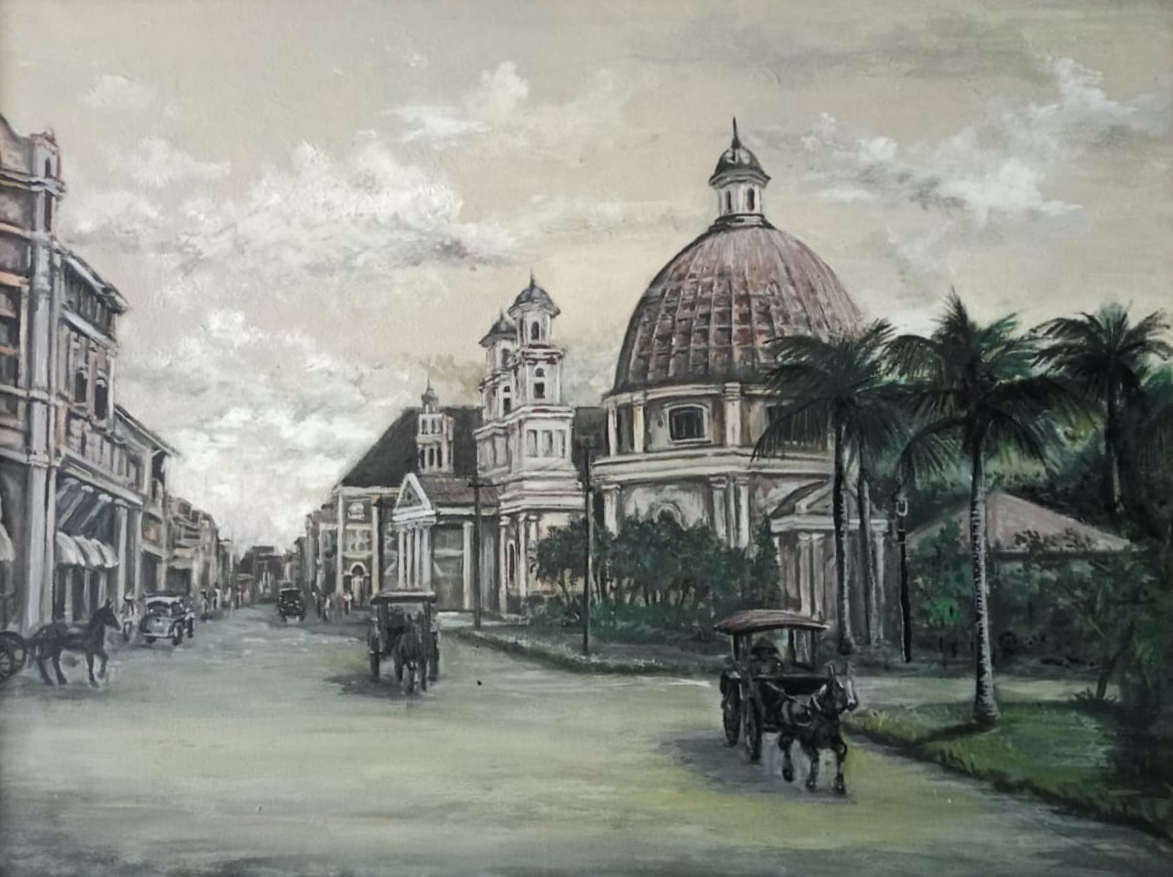 Lukisan Gereja Blenduk ini menghadirkan panorama klasik kota lama Semarang dengan suasana yang penuh nostalgia. Dengan teknik sapuan warna monokromatik yang lembut, karya ini berhasil menangkap esensi keindahan arsitektur kolonial yang masih berdiri megah hingga kini.
